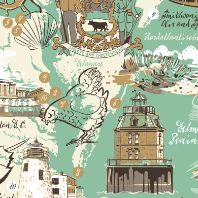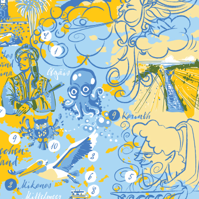 Unter diesem Thema veröffentlicht die ars navigandi GmbH ihr Kalendarium der kartographierten Erinnerungen 2017. In der eigens dafür gestalteten Schriftart „Treasure Type“ führt je ein landestypisches Sprichwort in das jeweilige Reiseland ein. Das Land selber wird mit je zehn Stationen präsentiert in denen je eine Reiseerinnerung dargestellt ist. So ergeben sich sehr individuelle Erinnerungskarten, die kartographisch verortet sind und zur Erkundung oder Erinnerung einladen.