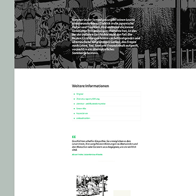 Aus der Integration der beiden Geschäftsbereiche limbion | books und limbion | learning ist eine abwechslungsreich gestaltete Seite geworden, die zum Lesen und Entdecken einlädt. Obwohl beide Geschäftsbereiche unterschiedliche Anforderungen haben und unterschiedliche Zielgruppen ansprechen, bilden sie unter der Dachmarke »limbion« eine Einheit und werden verschiedenen Ansprüchen gerecht.