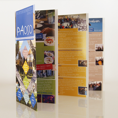 Umsetzung des Semesterprogramms für das Paoso – die Katholische und Evangelische Hochschulgemeinde (KHG und EHG) in München-Pasing. Das zwölfseitige Programmheft, im Leporellofalz, erscheint halbjährlich und bietet Ein- und Überblick über die vielfältigen Angebote der Hochschulgemeinde.